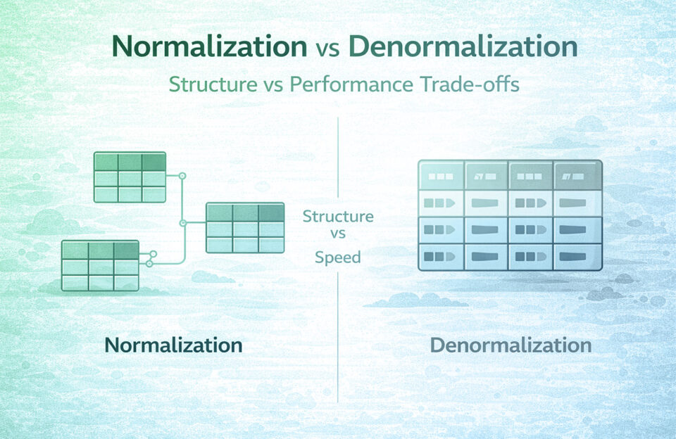 The result is a trade-off between data integrity and query performance. Normalization ensures that each piece of data exists in one place, which prevents inconsistencies during updates. Denormalization reduces the need for joins by storing pre-combined or duplicated data, which simplifies queries and improves read performance. The difference becomes clearer when comparing how each approach handles structure, queries, and updates.